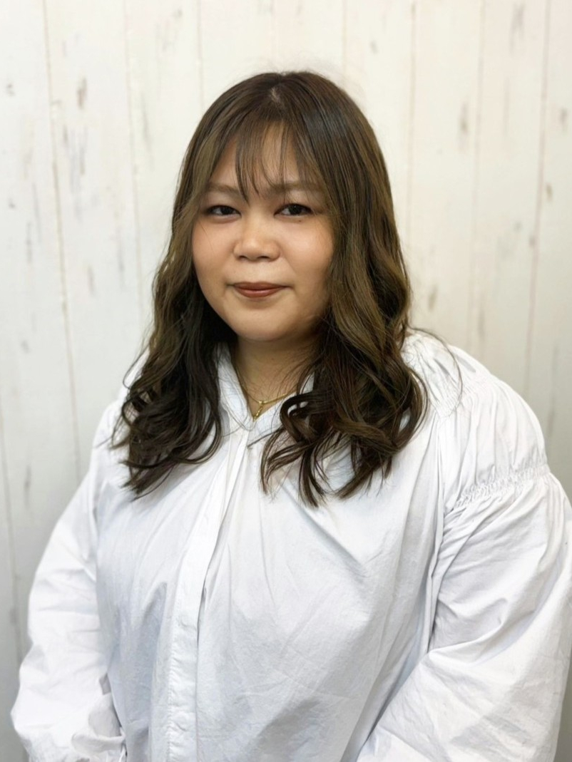 透明感のあるカラーと外ハネ感でヌーディースタイル。前髪を軽めにすることにより、可愛さの中に抜け感を表現。カラーはアッシュ系でトレンドを取り入れ、ミディアムボブに飽きてしまった方やスタイルチェンジを考えている方へお勧めです。
